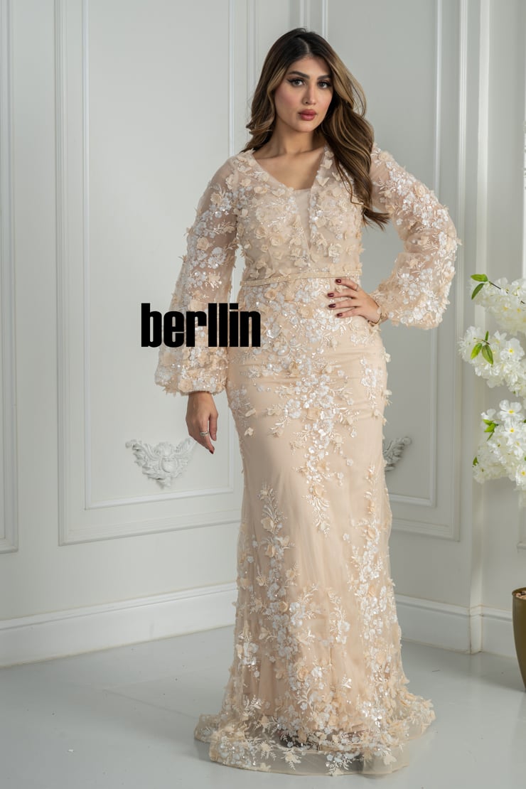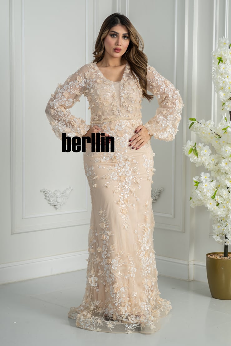 فستان يجمع بين النعومة الملكية والفخامة الراقية… تصميم سماوي مطرّز بالكامل يلفت الأنظار من أول نظرة، وينحت القوام بأسلوب أنثوي انسيابي. تفاصيل الورود الثلاثية الأبعاد ولونة البيج ولمعته الهادئة تمنحك حضورًا متفاوتًا بين الرقة والبذخ، ليكون خيارك المثالي لكل مناسبة تحتاجين فيها إطلالة تُحكى وتُعاد.