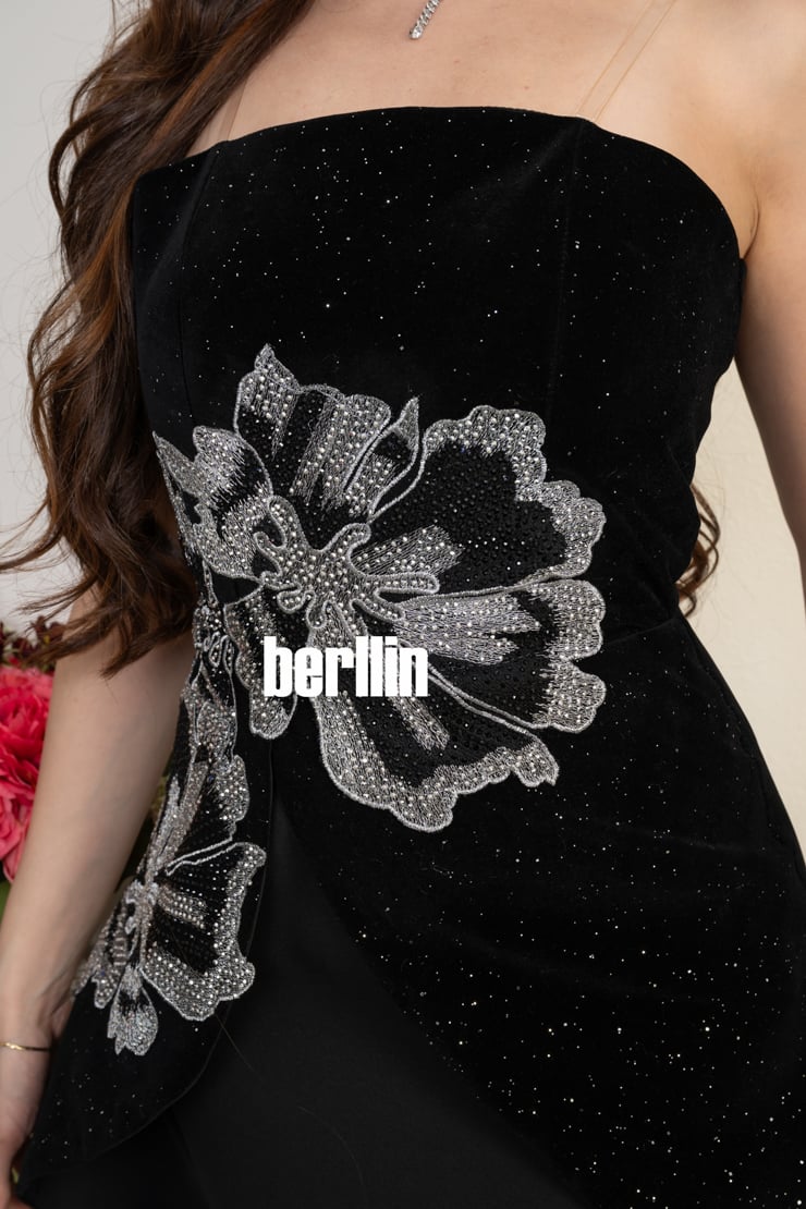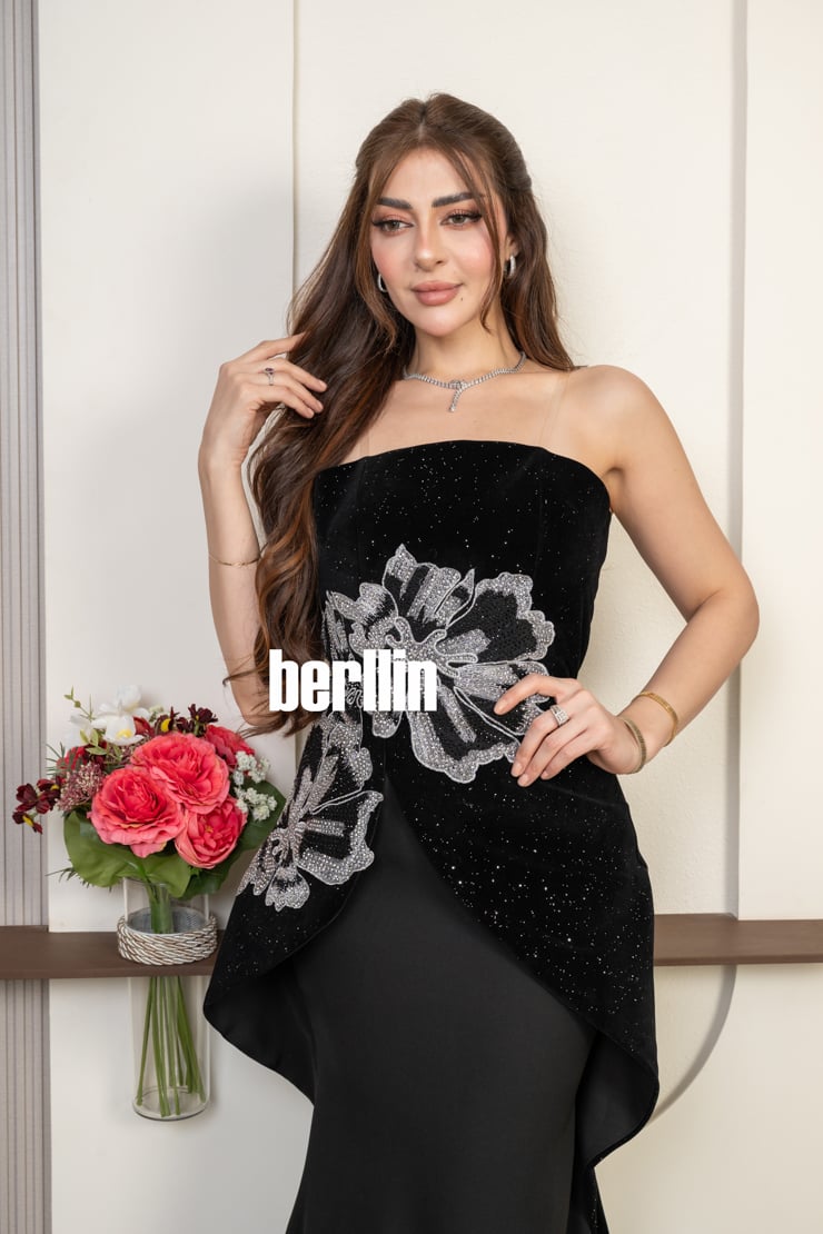 سهرة طويل باللون الأسود الكلاسيكي، مصمم بأسلوب أنثوي أنيق يبرز جمال القوام بانسيابية مثالية. يجمع التصميم بين الفخامة الهادئة والتفاصيل الراقية، ليمنحك إطلالة متوازنة تجمع بين الجرأة والرقي.