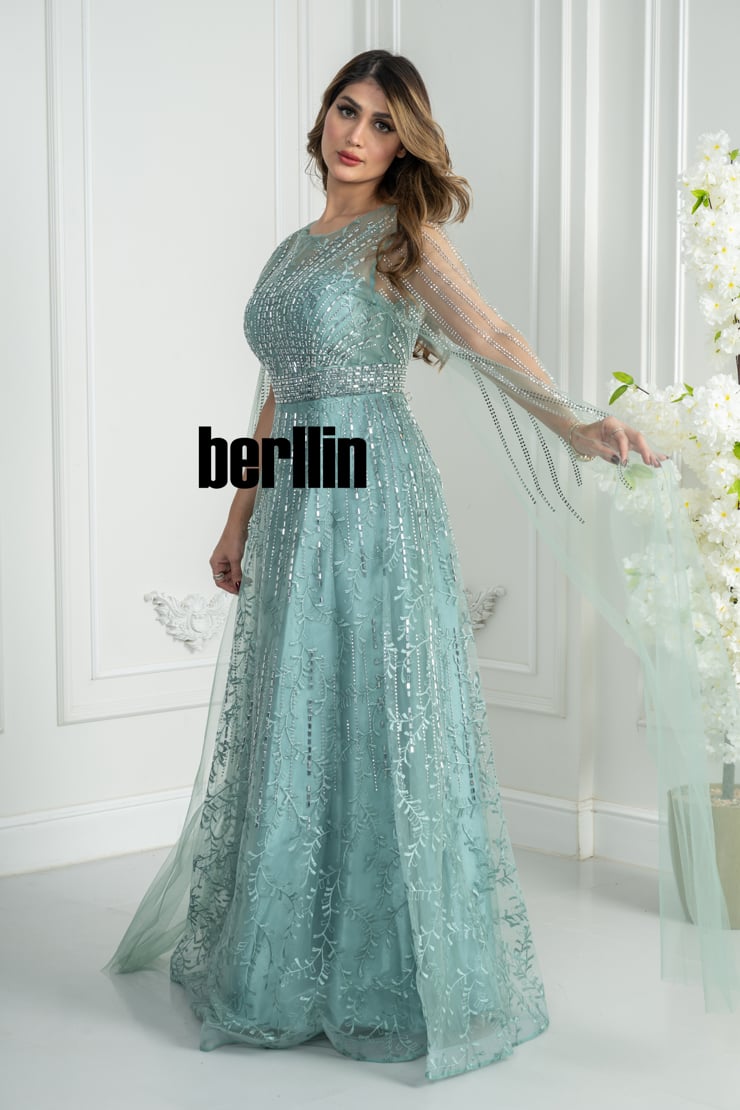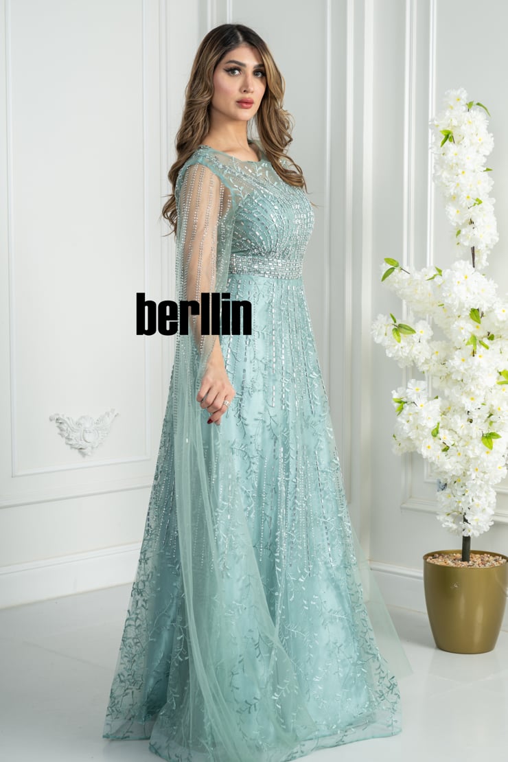 فستان سهرة بلون الأزرق الفاتح بدرجة راقية وهادئة تمنح إحساسًا ملكيًا منذ اللحظة الأولى.