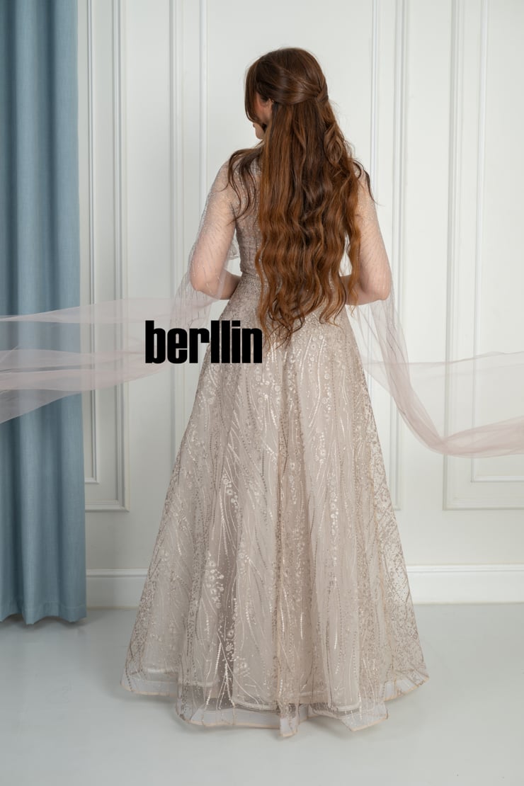 عيشي لحظة من الفخامة اللامتناهية مع هذا الفستان الشامبين المطرّز الذي يجمع بين الأناقة الكلاسيكية والتصميم العصري الفاخر.
