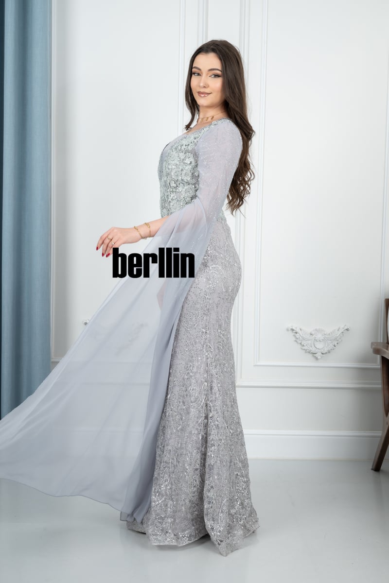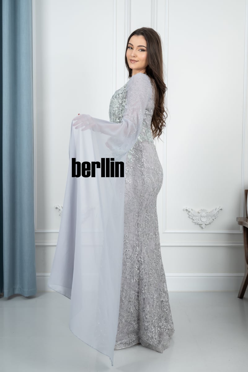فستان سهرة أنيق بلون رصاصي يعكس الفخامة والأنوثة الراقية. يتميز بتصميم فاخر يجمع بين التفاصيل المطرزة بدقة وقصة كلاسيكية تمنحك إطلالة ساحرة تناسب المناسبات الفاخرة.