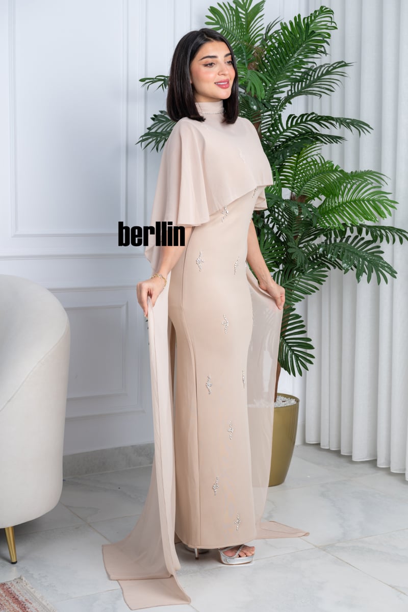 يتميز هذا الفستان من برلين بتصميم ساحر يجمع بين الأناقة العصرية واللمسات الكلاسيكية الفخمة. مصنوع من قماش راقٍ بنعومة وانسيابية مثالية، ينسدل برقة ليمنحك إطلالة أنثوية راقية.