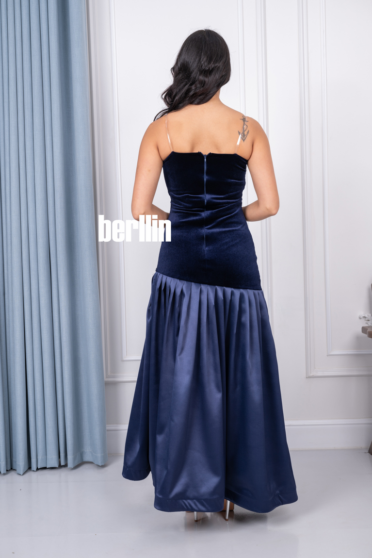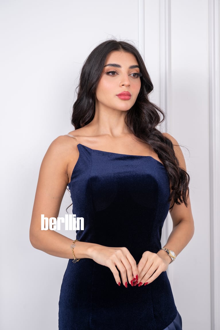 فستان طويل مصنوع من المخمل الأحمر الفاخر، يتميز بلمعته الناعمة وقماشه الذي يعكس الأناقة والرقي. تصميمه الانسيابي يعانق القوام برقة، مع تفاصيل بسيطة تضيف لمسة من الفخامة بقصة مائلة على الصدر تعطية ظهور أنيق. اللون الأحمر العميق يضفي جرأة وأنوثة، مما يجعله مثاليًا للسهرات والمناسبات الفاخرة.
