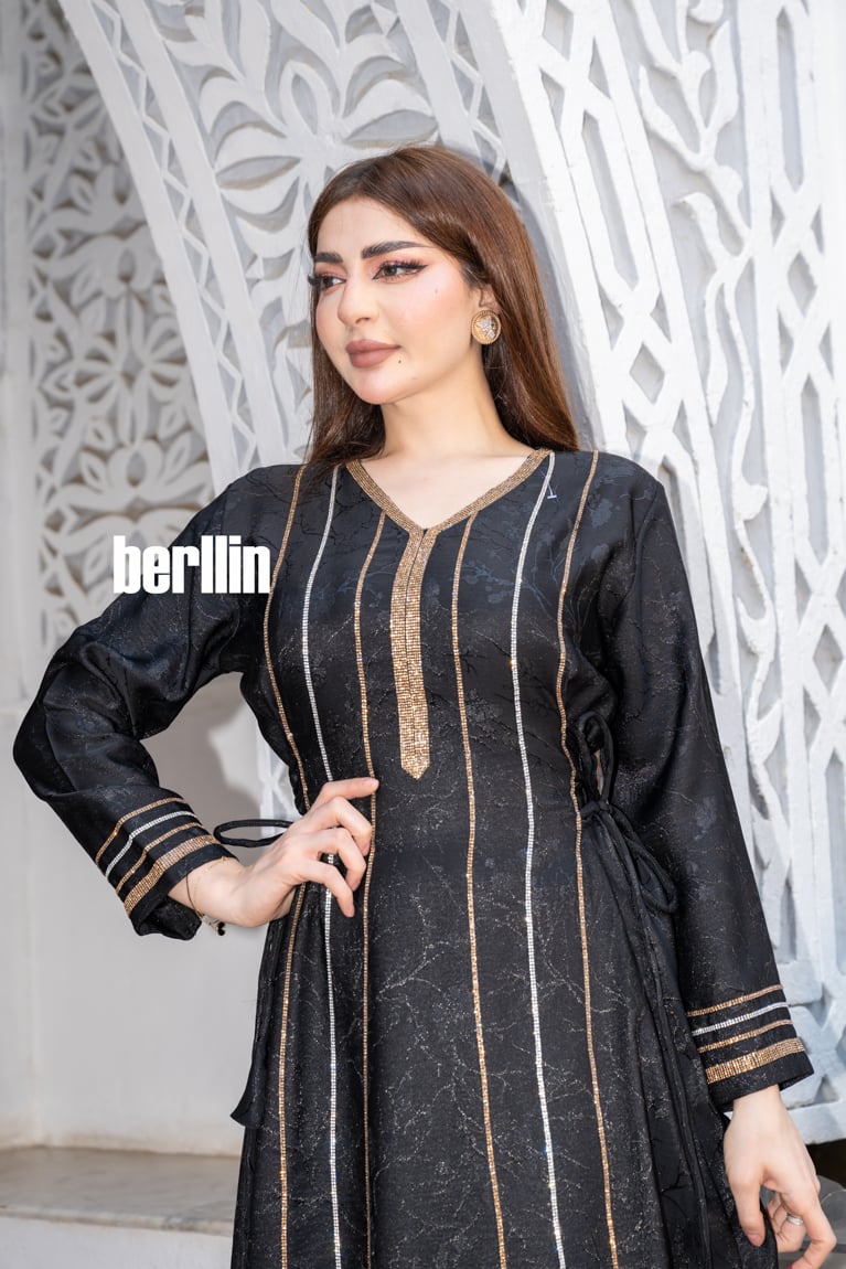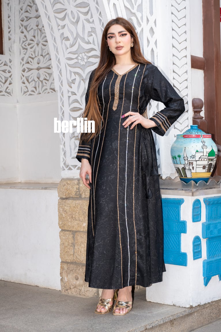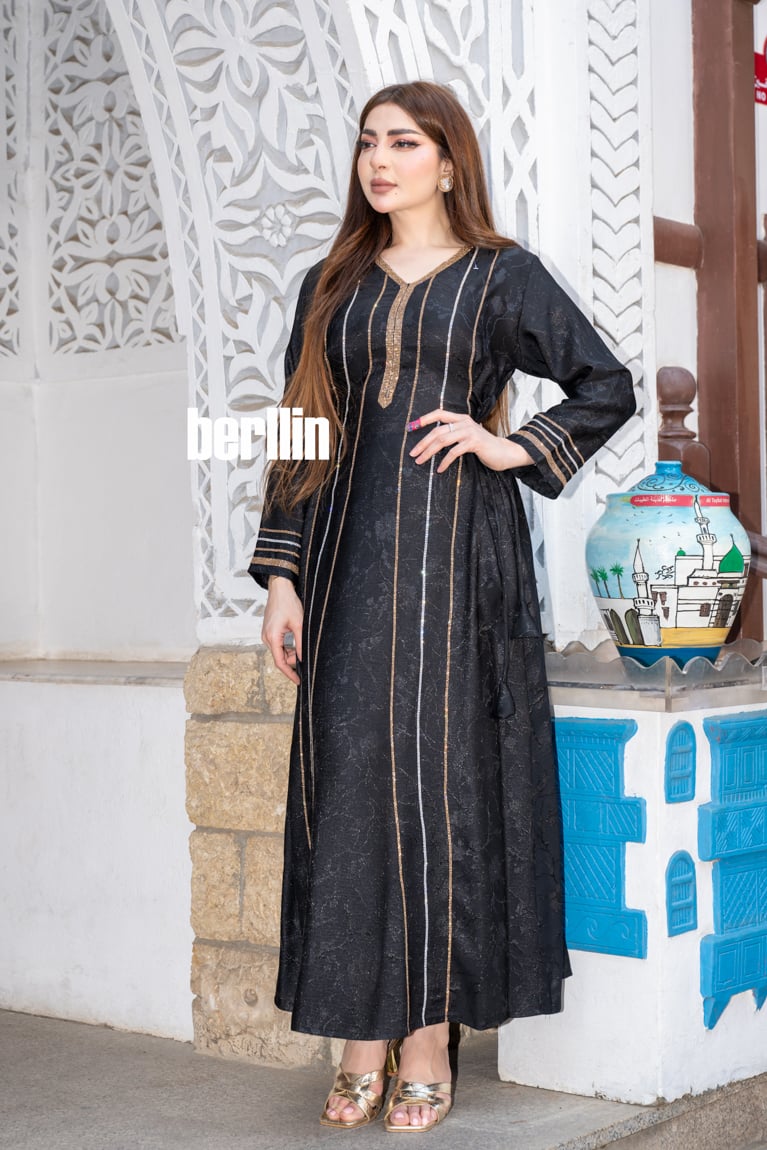 جلابية سوداء أنيقة بخطوط ذهبية فاخرة!