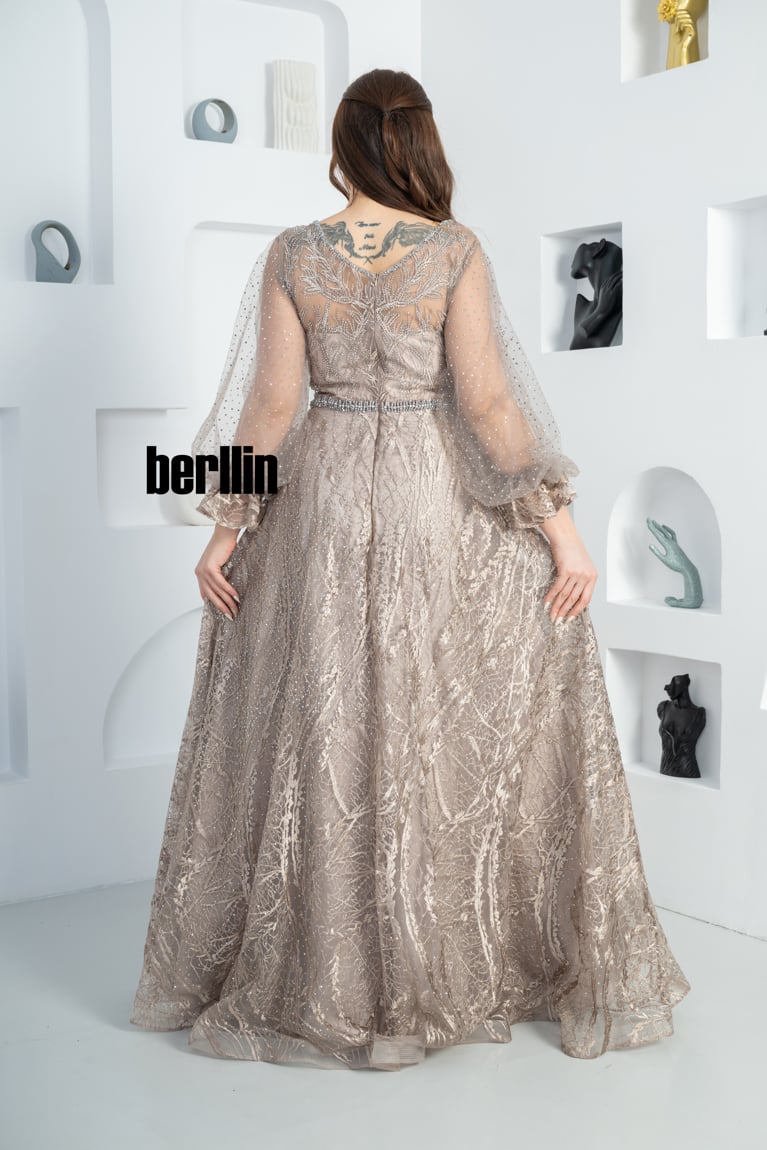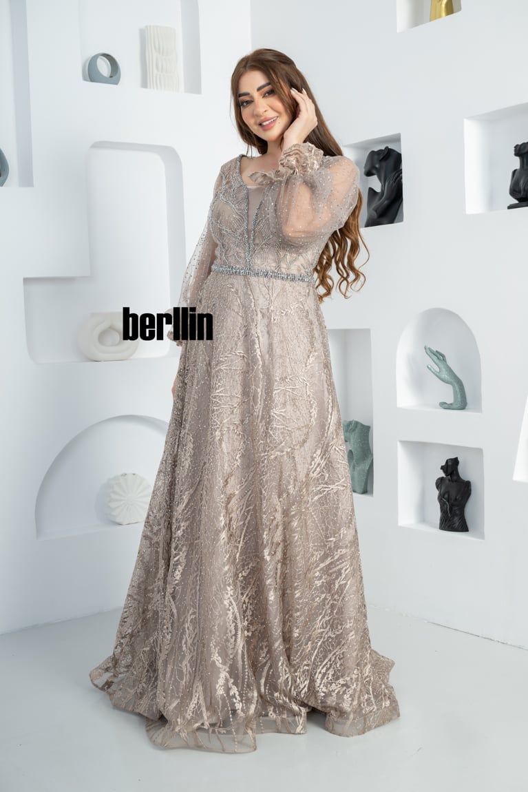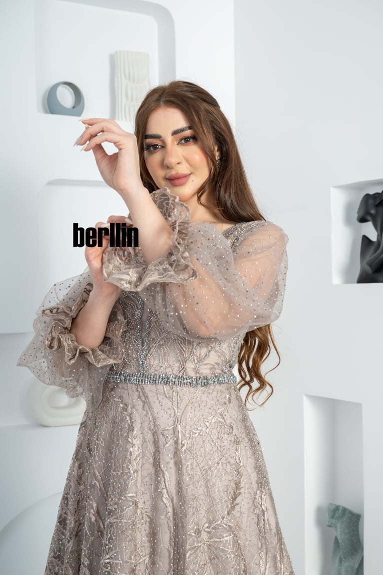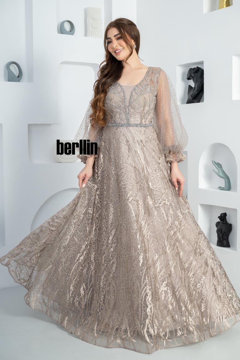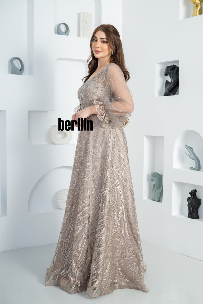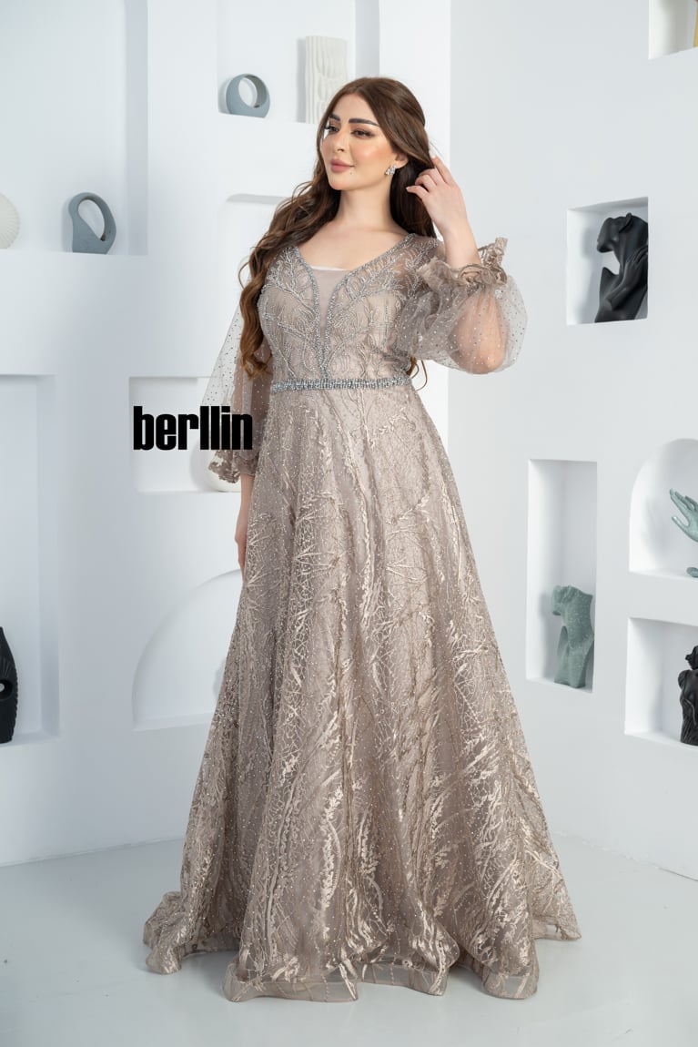 نوع التصميم: ماكسي مميز بكم بف وبقصة واسعة لون بيج