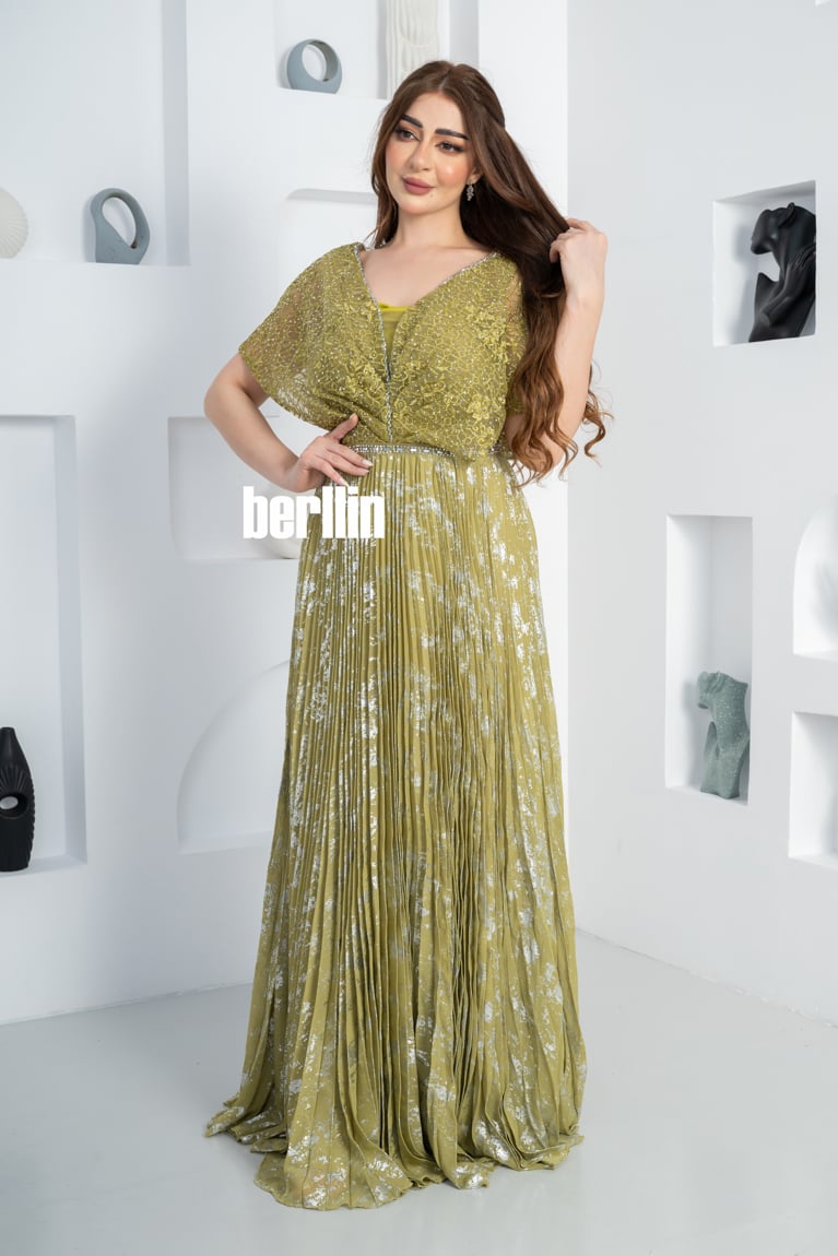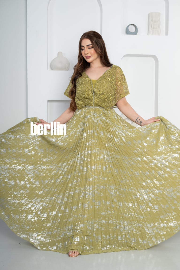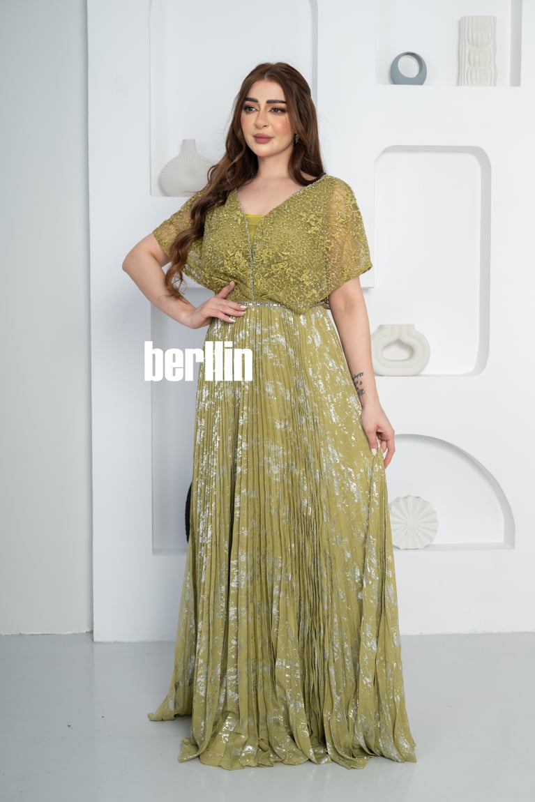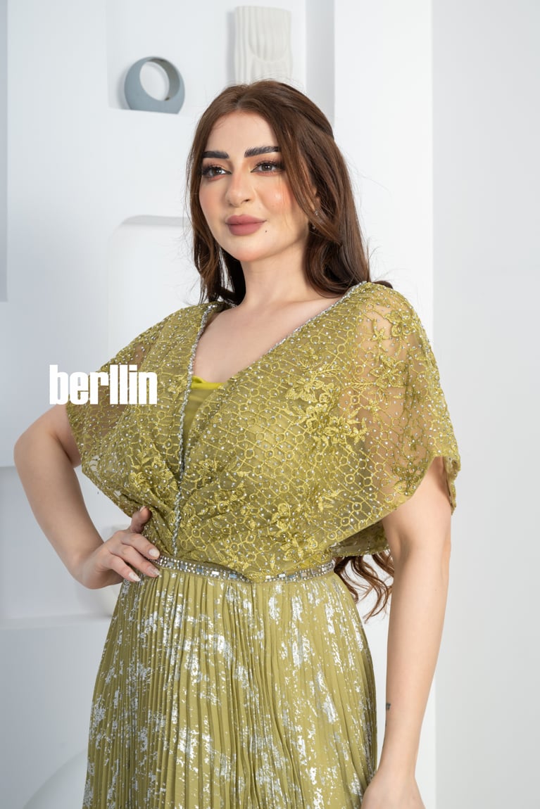 نوع التصميم: طويل بليسية اوف شولدر مطرز لون اخضر