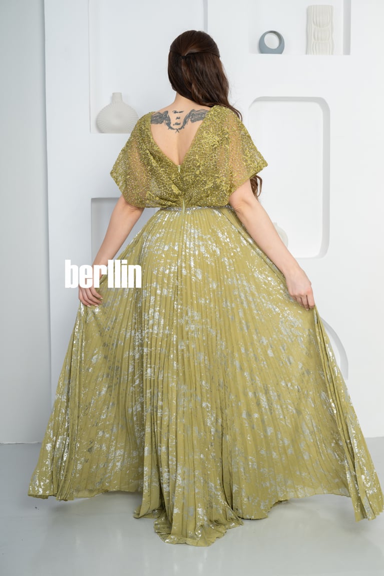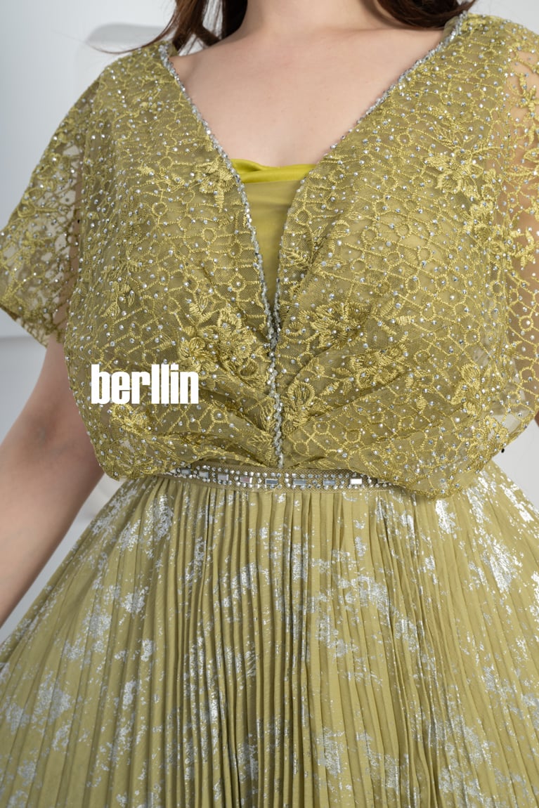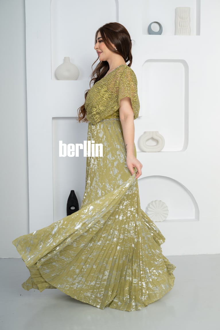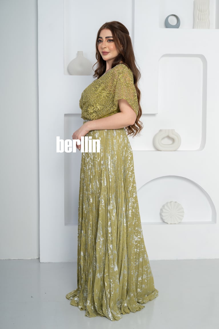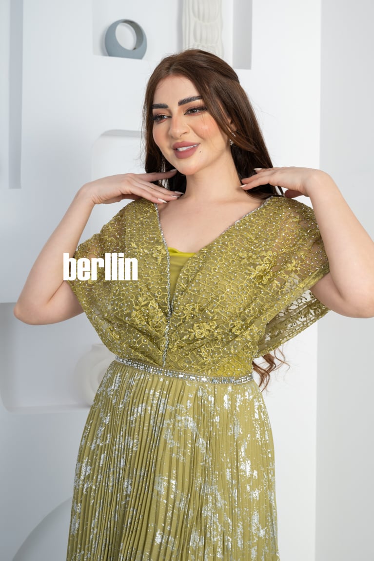 نوع التصميم: طويل بليسية اوف شولدر مطرز لون اخضر