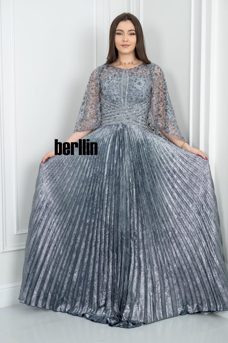 - قماش لامع بطيات ناعمة تمنح الفستان انسيابية مذهلة عند المشي.