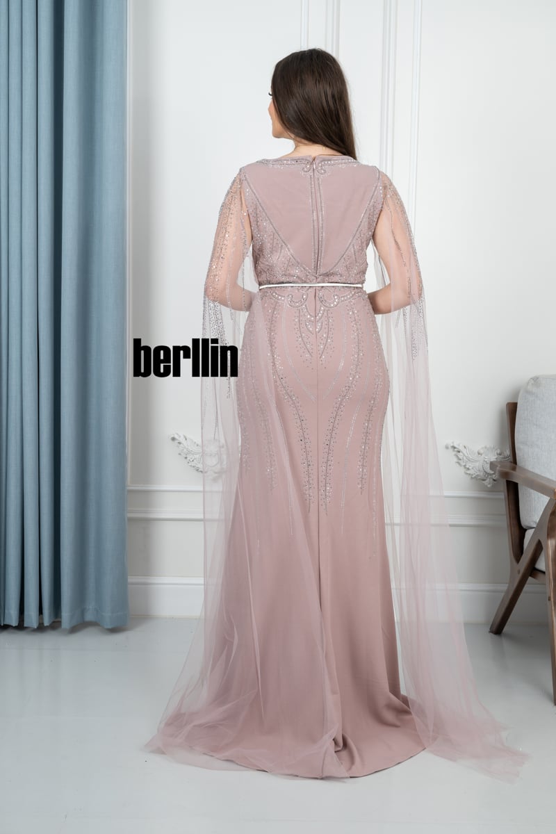فستان سهرة فاخر بلون وردي، مصمم بأسلوب يجمع بين الأناقة والفخامة. يأتي بقصة ضيقة تنساب بانسيابية راقية على القوام، مما يبرز جمال القوام بطريقة أنثوية مميزة.