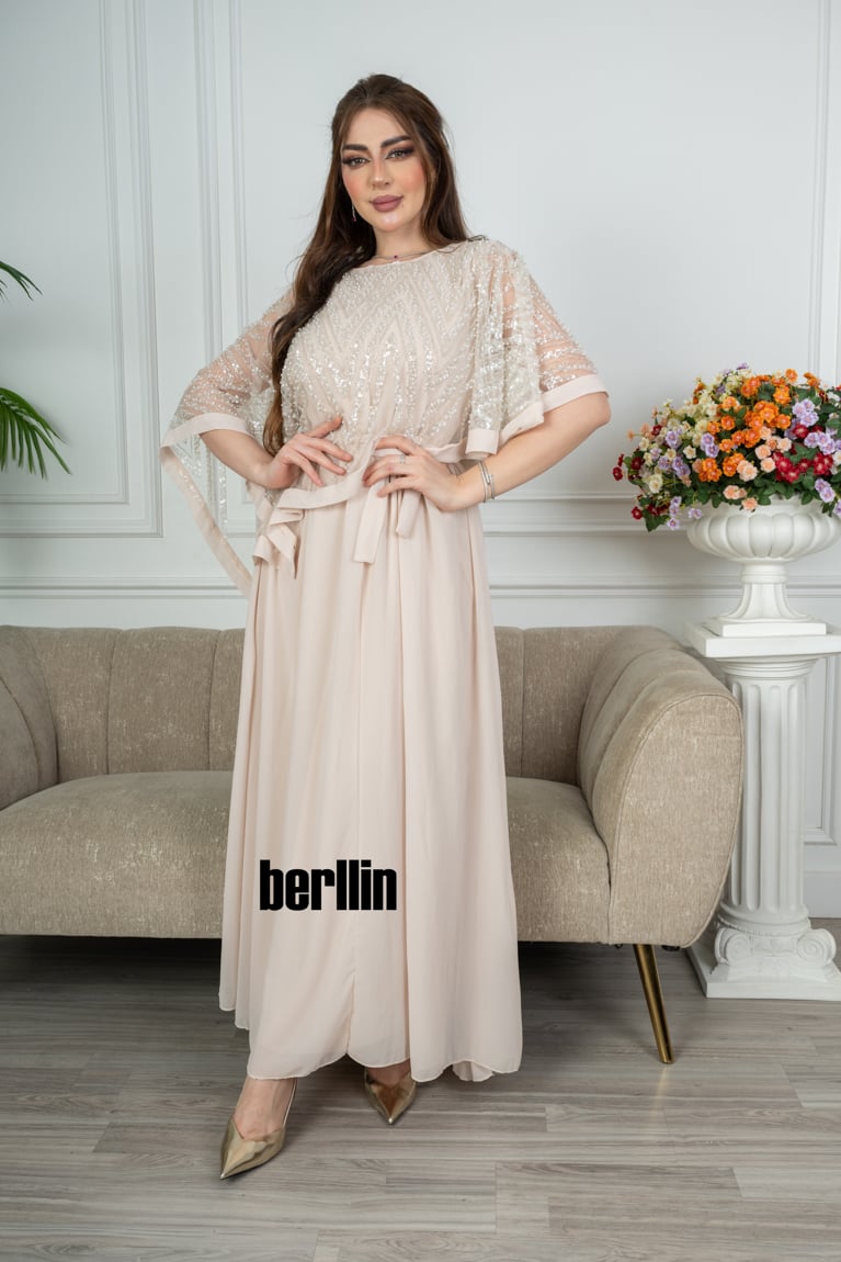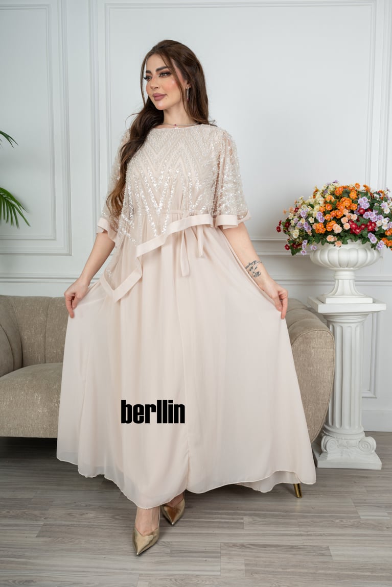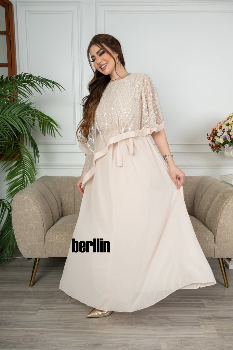يجسد فستان برلين اهتمام الماركة بالتفاصيل الدقيقة لتنعمي بإطلالة خاطفة للأنظار، ويأتي مصنوعًا ببراعة من قماش الكريب المطعم بشغل الخرز الامع الانيق حيث ينسدل بأناقة على الجسم ياقة هالتر خناقي مفتوحة مطرزة ، ويعد مثاليًا للارتداء في المناسبات الخاصة كما يبدو رائعًا في الصور الفوتوغرافية. ارتديه مع حذاء بكعب مرتفع بلون متناسق.