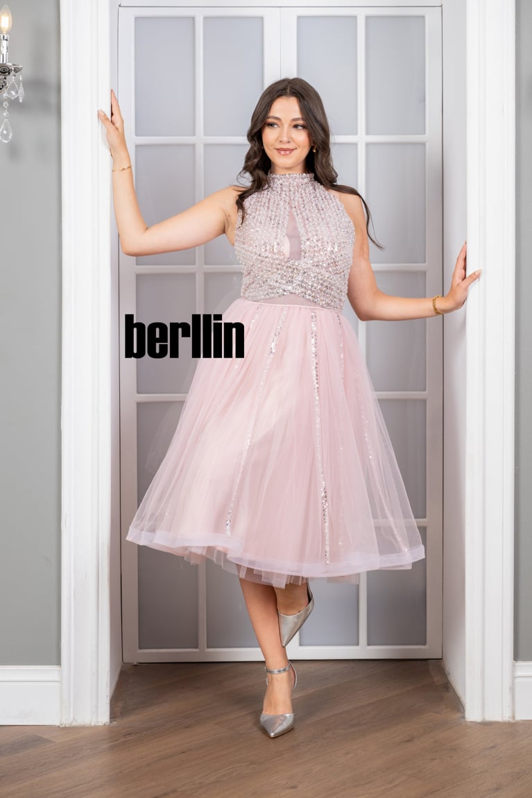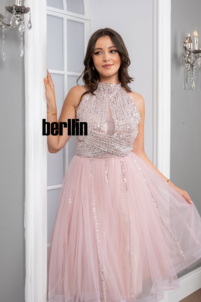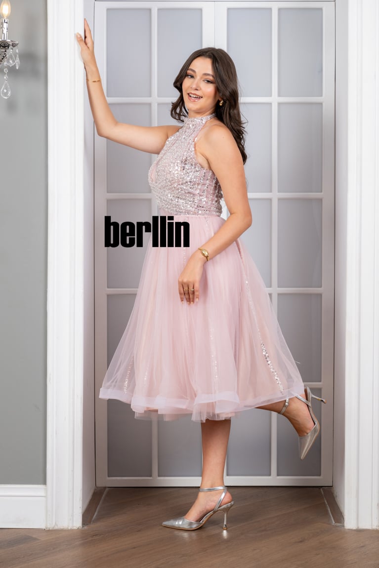 نوع التصميم: فستان سهره قصير سندريلا لون زهري