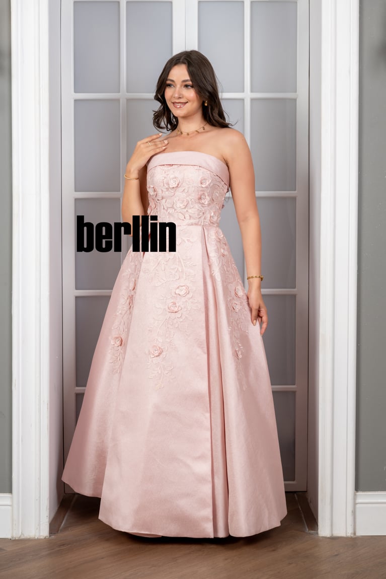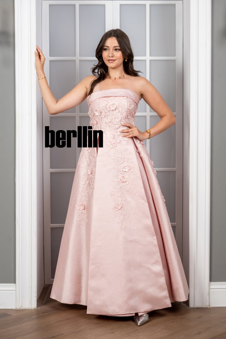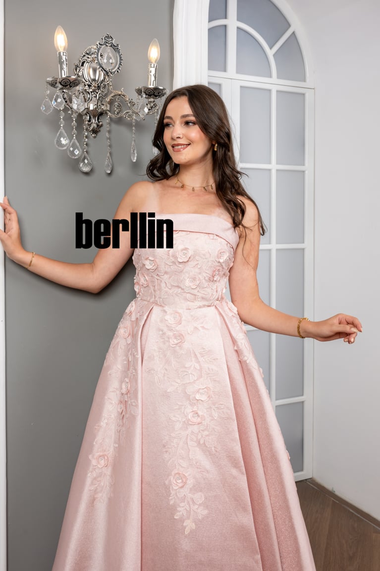 يعد فستان برلين خيارًا مثاليًا لإطلالتك في السهرات، فهو مصنوع من مزيج الميكادو عالي الجودة بإضافة الورد تكسبه طابعًا أنيقًا. وسيصبح تصميمه الكلاسيكي خيارك المفضل في مختلف المناسبات القادمة.