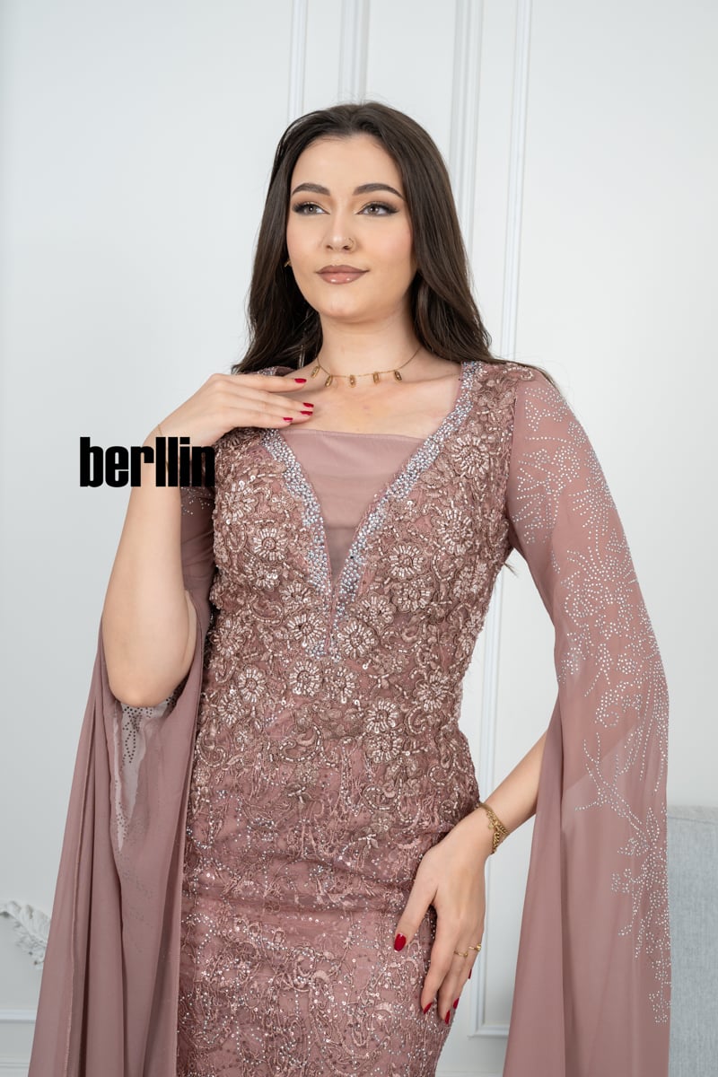 فستان سهرة أنيق بلون روز غامق يعكس الفخامة والأنوثة الراقية. يتميز بتصميم فاخر يجمع بين التفاصيل المطرزة بدقة وقصة كلاسيكية تمنحك إطلالة ساحرة تناسب المناسبات الفاخرة.