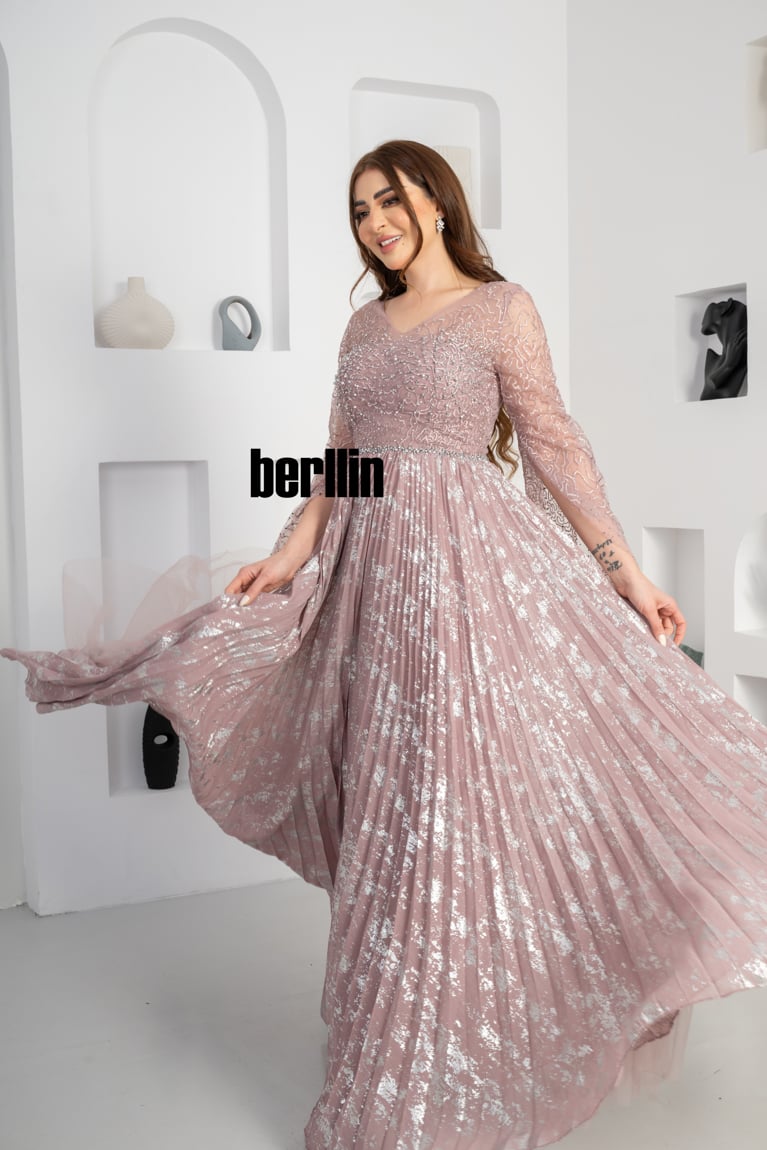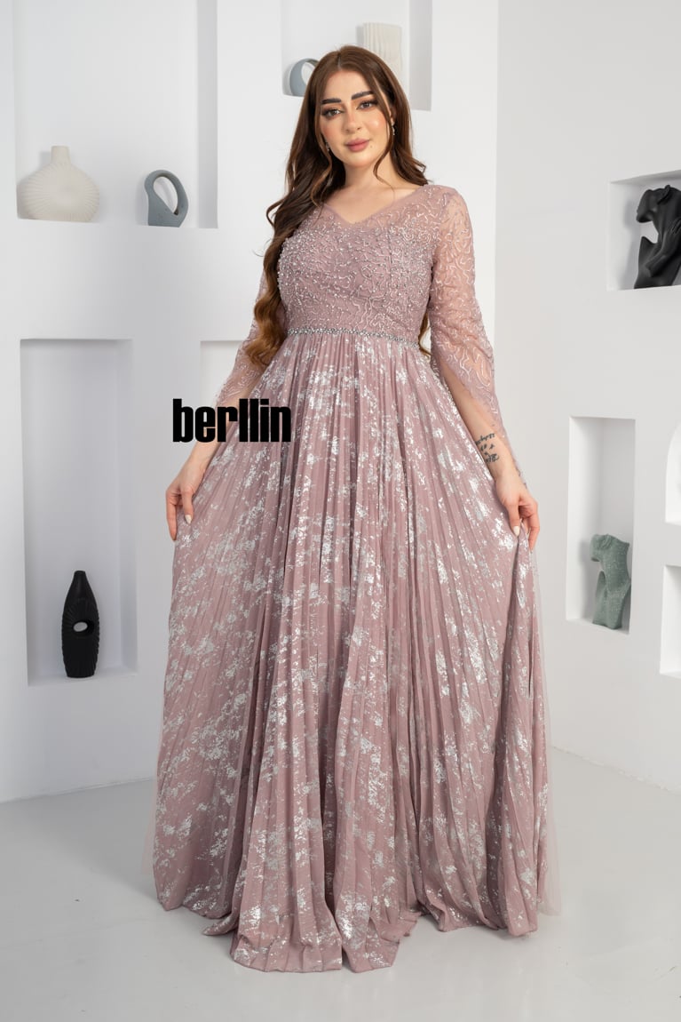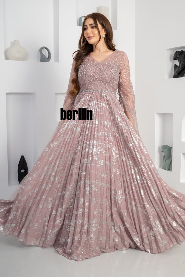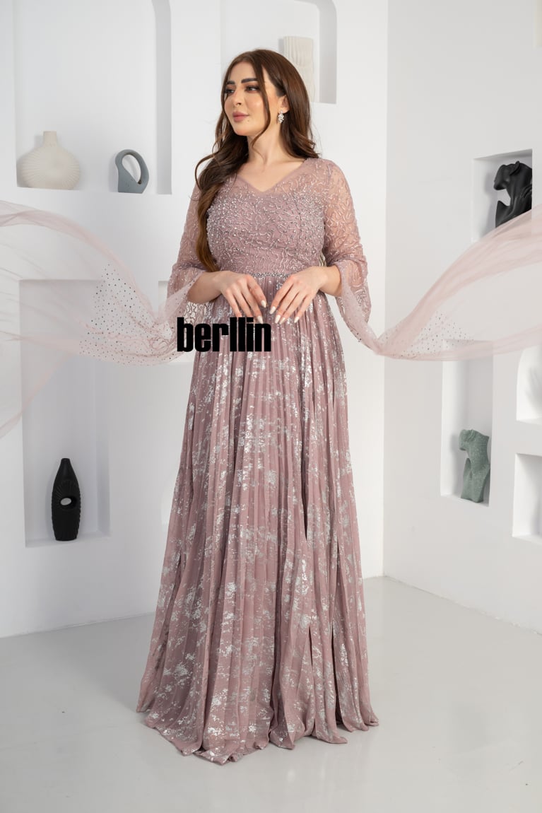 يتميز فستان سهره طويل بنمط أزهار مزين بلمعه الشيفون والفصوص لون وردي تضفي لمسة ساحرة على مظهرك في المناسبات الخاصة. ويأتي مصنوعًا من تول مسامي يمنحك إطلالة راقية عند تنسيقه مع مجوهرات وحذاء بكعب مرتفع وسيور.