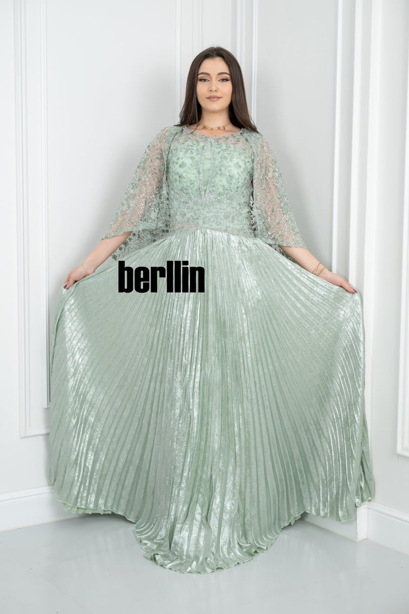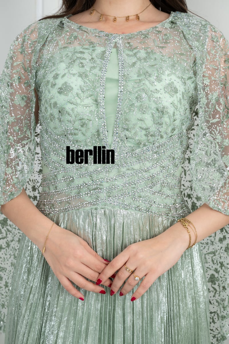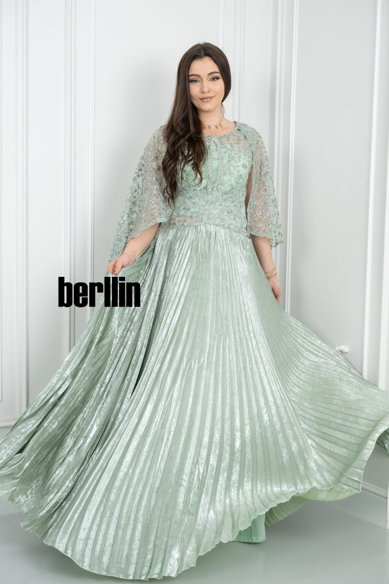 - قماش لامع بطيات ناعمة تمنح الفستان انسيابية مذهلة عند المشي.