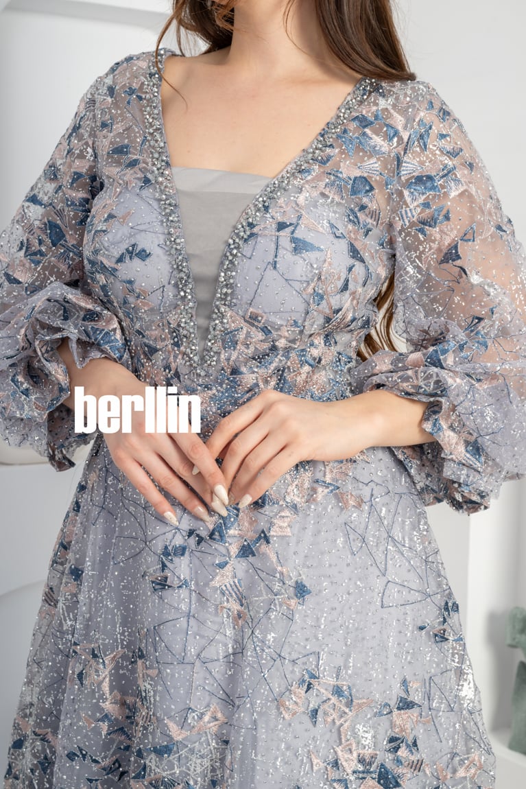 برعت ماركة برلين في تقديم هذا الفستان بتصميم مستوحى من القصص الخيالية، حيث يتميز بأكمام طويلة بتصميم بف وبطانة جزئية تمنحك تغطية مناسبة ويغلق بزم خفي في الخلف ويزدان بطبقة مطرزة. يعد هذا الفستان الخيار المثالي لإطلالتك المسائية وفي حفلات الزفاف والمناسبات الخاصة.
