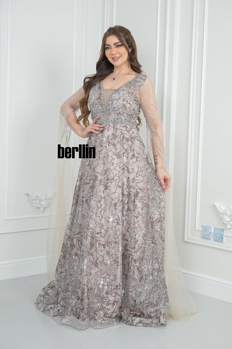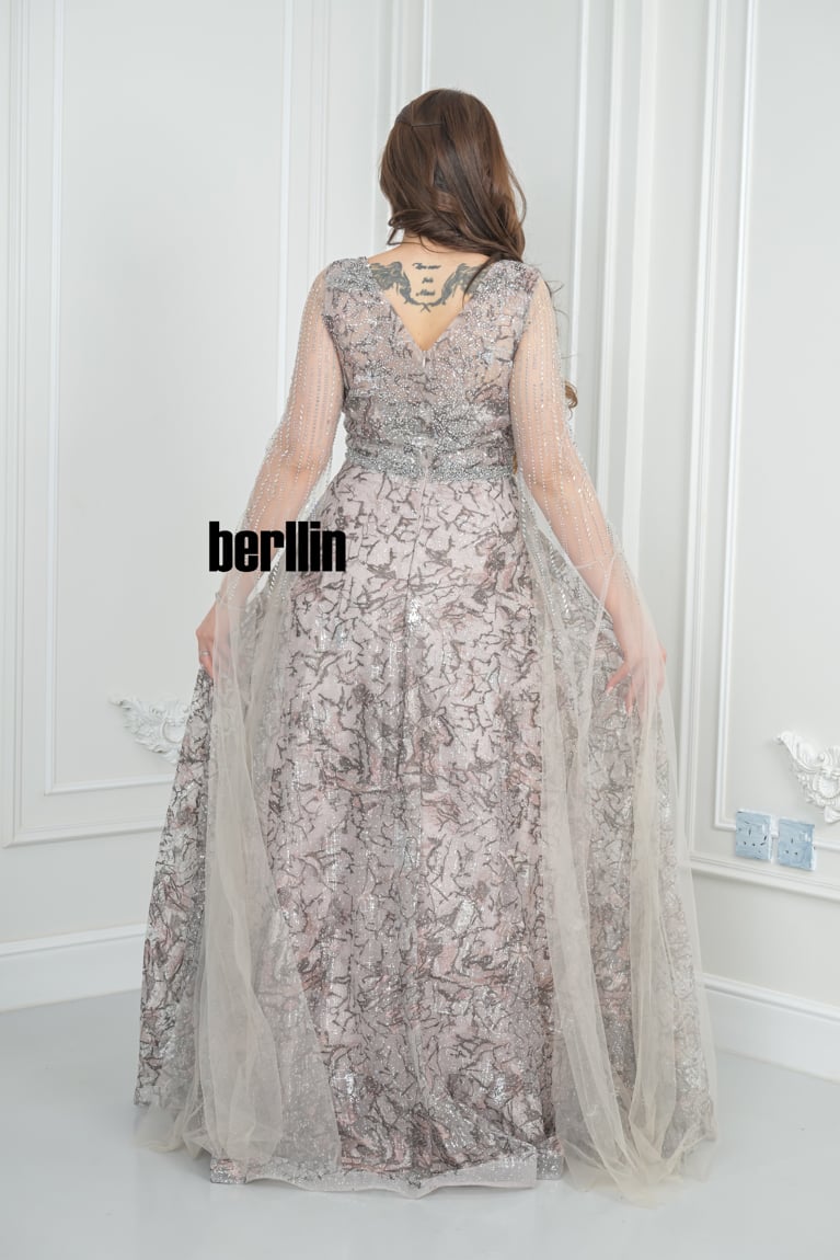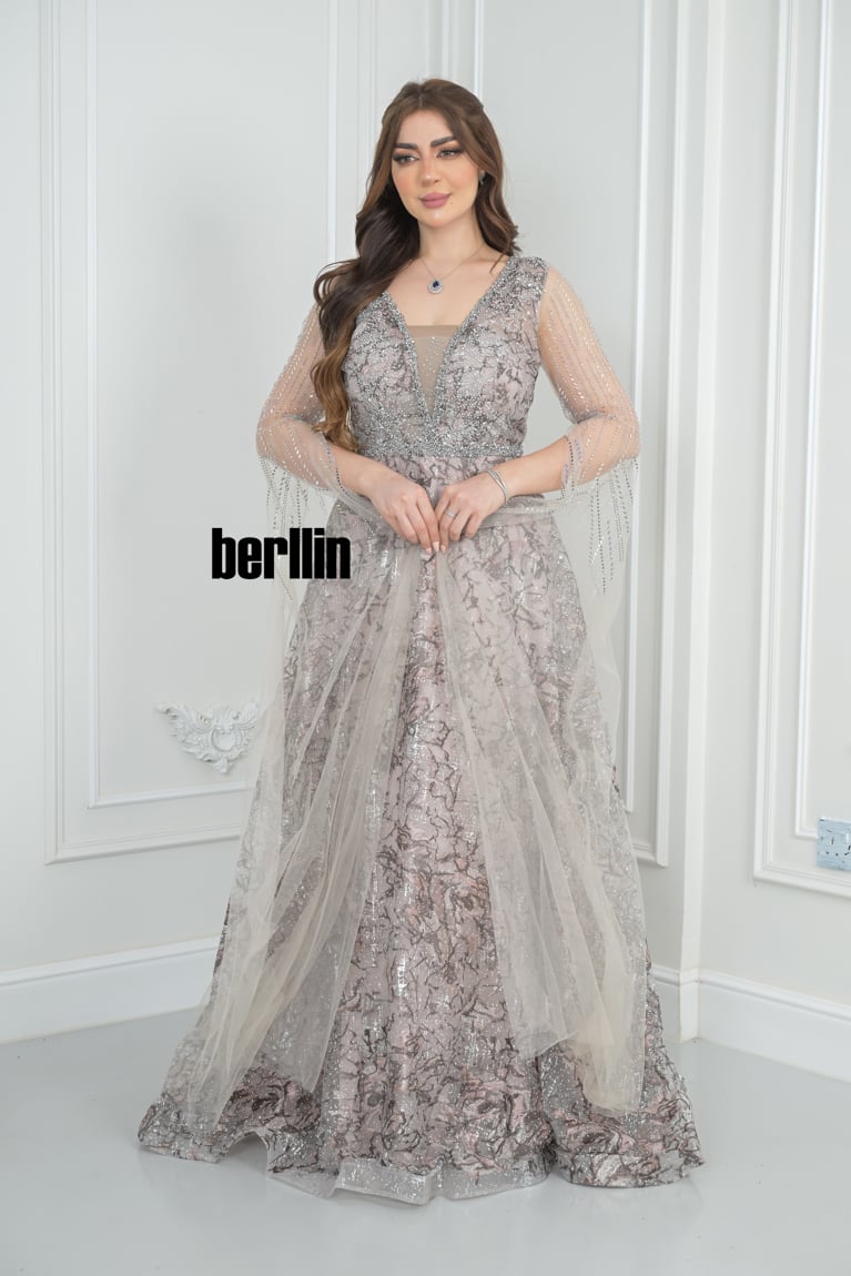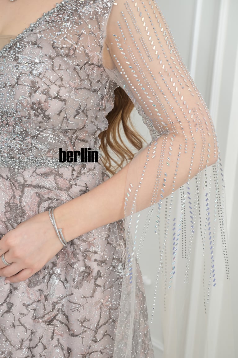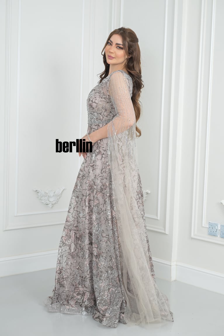 برعت ماركة برلين في تقديم هذا الفستان بتصميم مستوحى من القصص الخيالية، حيث يتميز بأكمام طويلة كيب بخامة التل المطعمة بالفصوص الامعة بتصميم كيب وبطانة جزئية اضافية بدي تمنحك تغطية مناسبة ويغلق بزم خفي في الخلف ويزدان بطبقة مطرزة. يعد هذا الفستان الخيار المثالي لإطلالتك المسائية وفي حفلات الزفاف والمناسبات الخاصة.