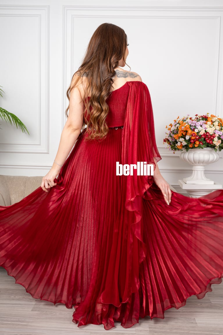 اكتشفي فستان سهرة مكسر جازار مميز بتطرز بتشجيرة لون احمر رائع وقصة عصرية. مثالي لإطلالة أنيقة ومتوفر بجميع المقاسات.