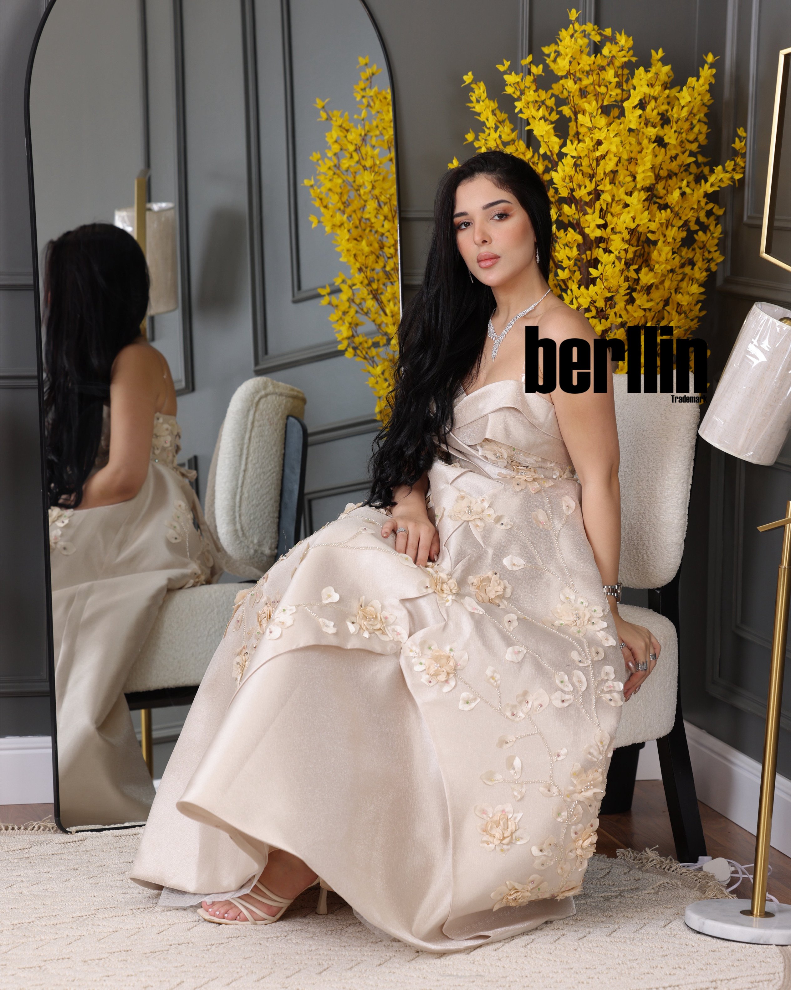 يتميز فستان السهرة من برلين بتوب مزين بالورد البارز الفانلي لتضفي لمسة ساحرة على مظهرك في المناسبات الخاصة. ويأتي مصنوعًا من الميكادو الفخم مسامي يمنحك إطلالة راقية عند تنسيقه مع مجوهرات وحذاء بكعب مرتفع وسيور.