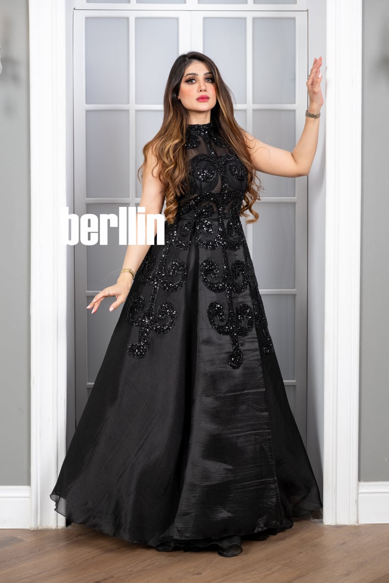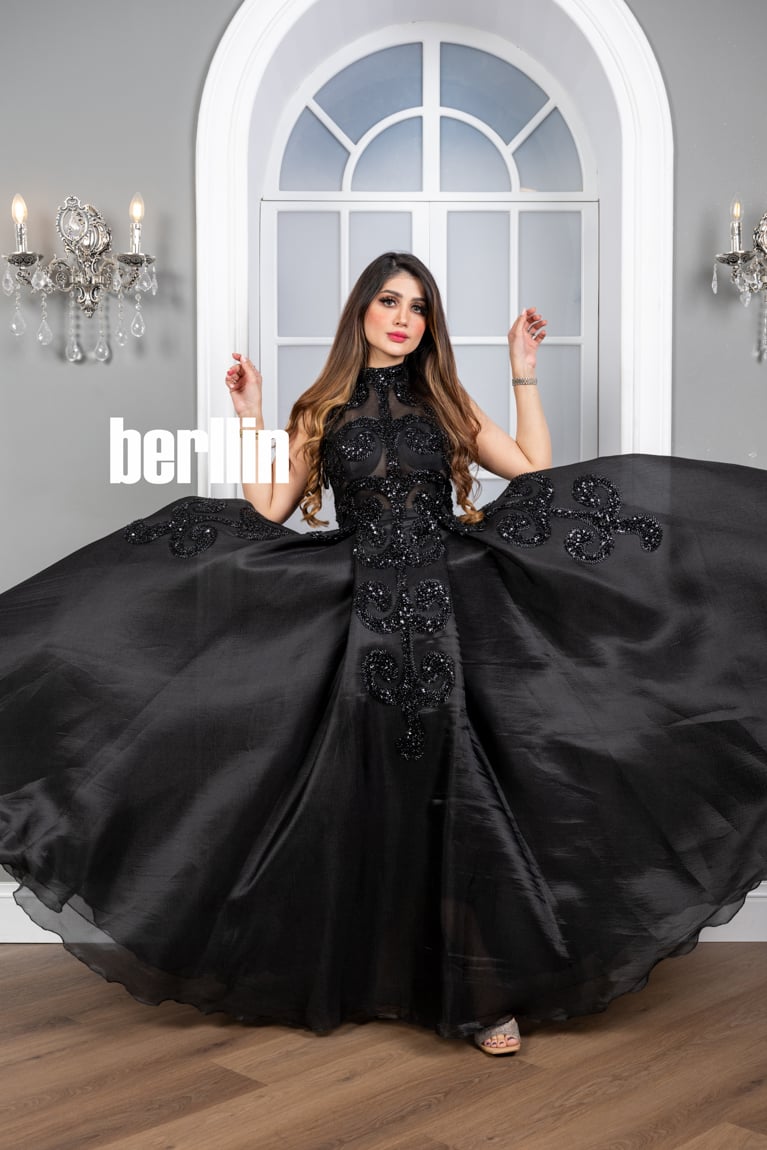 يعد هذا الفستان الطويل السهرة من برلين إضافة ساحرة إلى خزانة ملابسك المخصصة للمناسبات والسهرات، فهو مصنوع من القماش الجازار بياقة عالية مميزة بالفصوص الامعة لتكسبه طابعًا أنثويًا ساحرًا. ويعد خيارًا مثاليًا لإطلالتك في المناسبات والسهرات الاجتماعية.