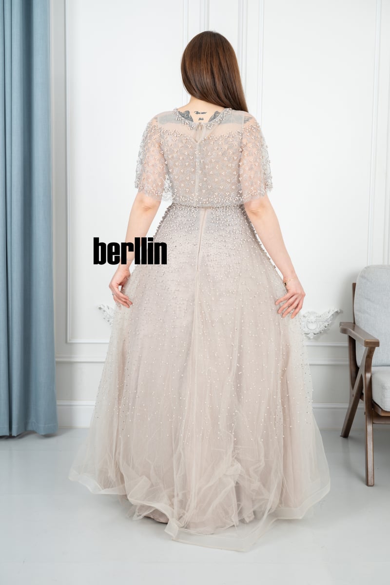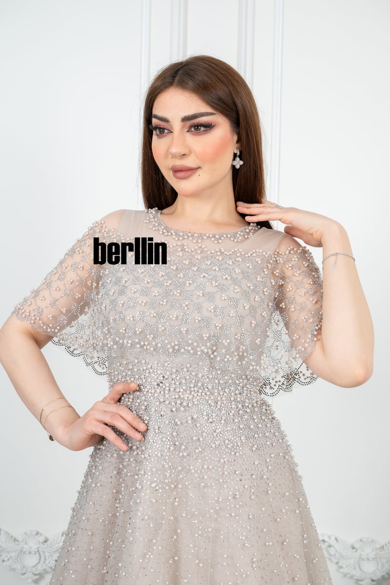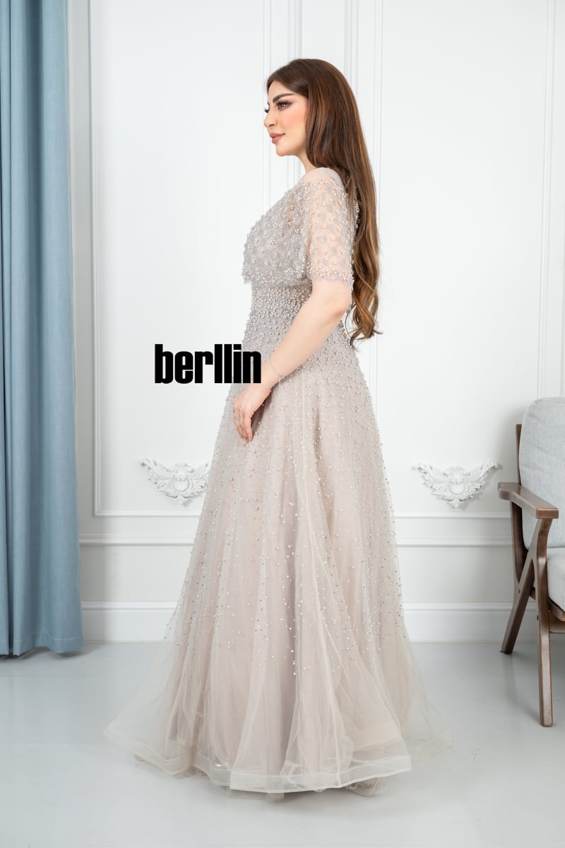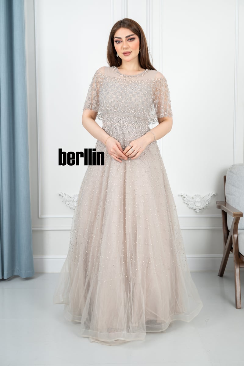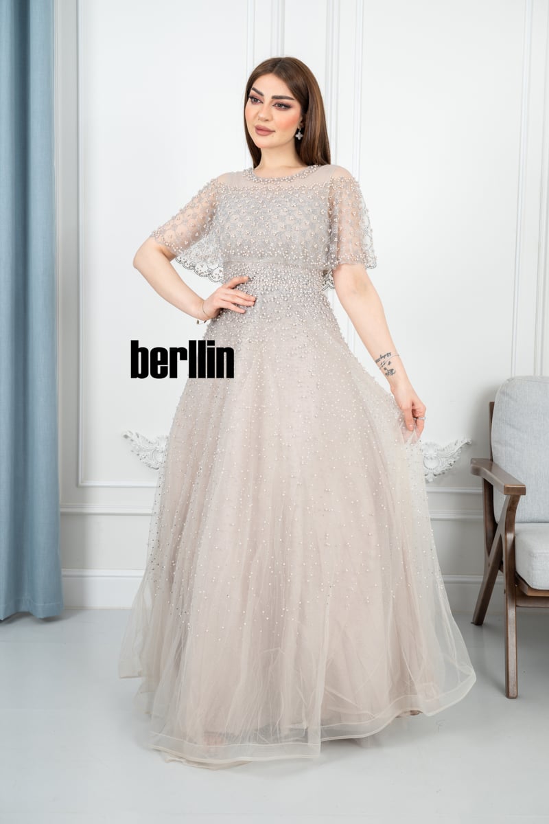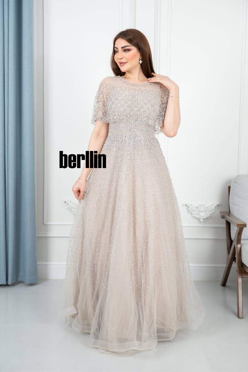 يتميز هذا الفستان الفاخر بلون بيج فاتح يجمع بين الرقي والأناقة، وهو مصمم خصيصًا للمناسبات الفخمة مثل حفلات الزفاف والخطوبة والسهرات الراقية.