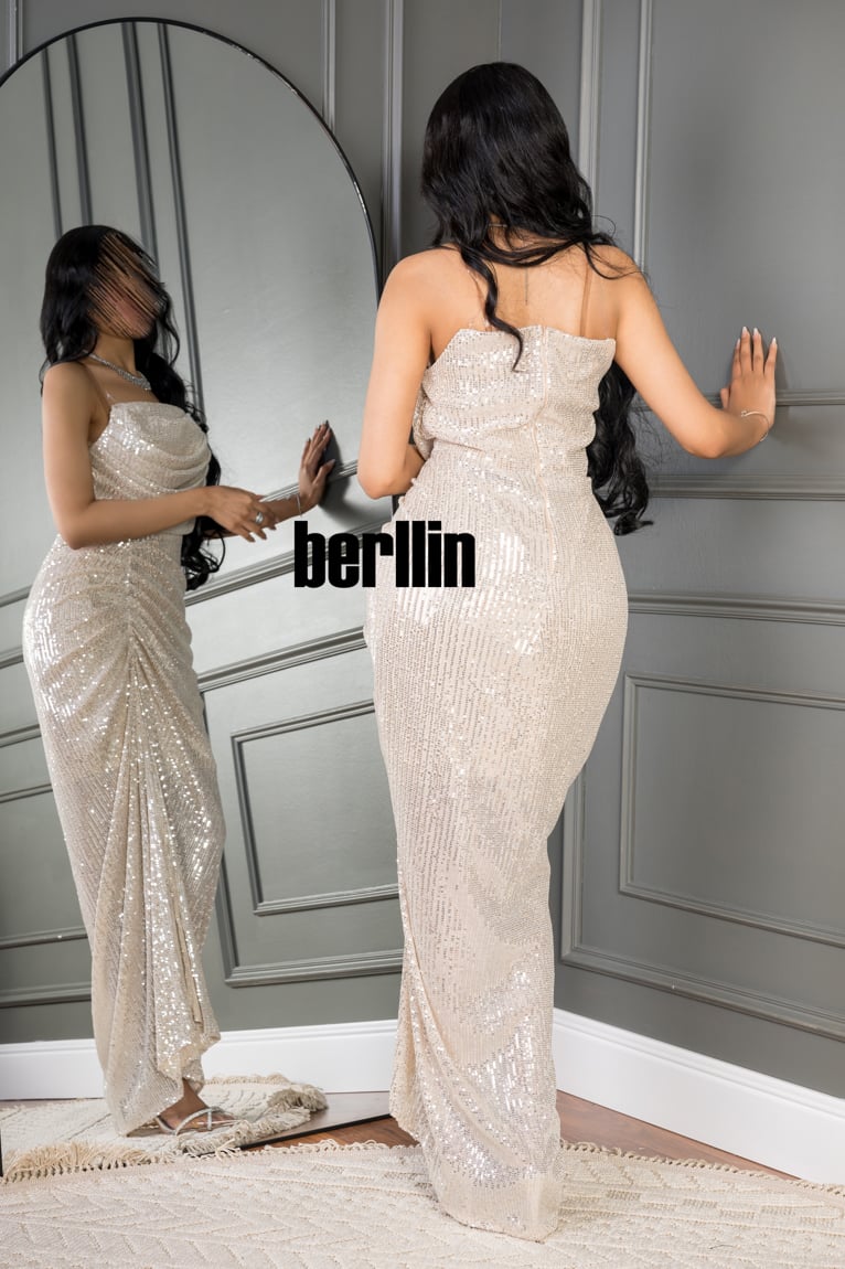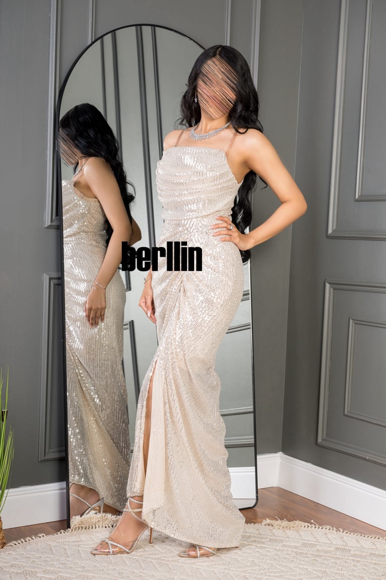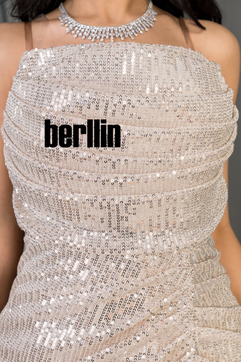 اكتشفي فستان سهرة بقصة من الخصر مميز بالترتر لون بيج رائع وقصة عصرية. مثالي لإطلالة أنيقة ومتوفر بجميع المقاسات.