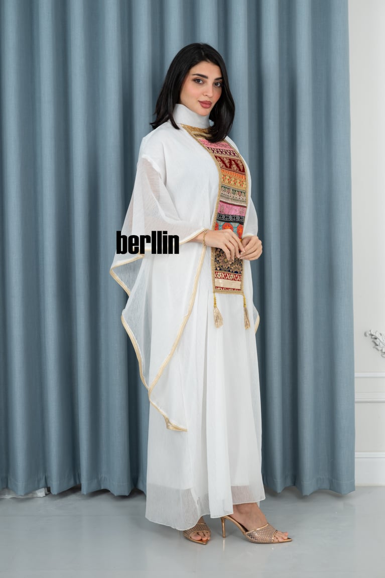 * تتميز بتطريز تراثي فاخر على الصدر بألوان زاهية ونقوش مستوحاة من الفن التقليدي.