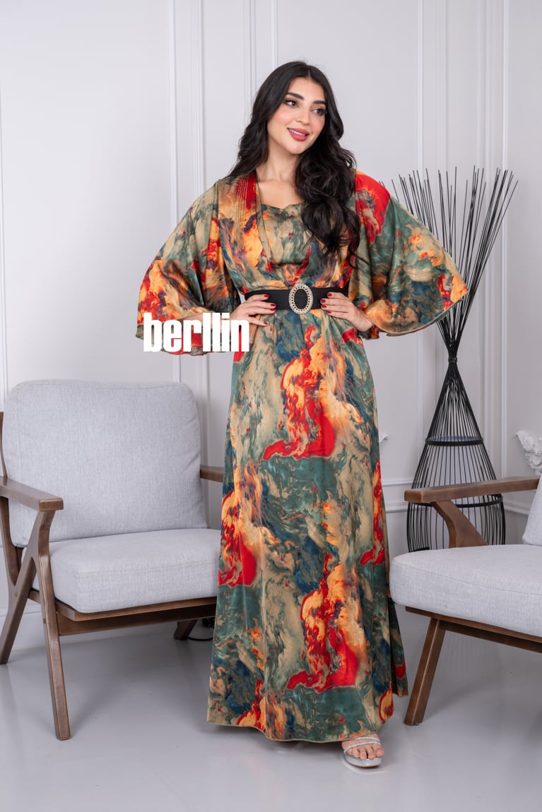 سيصبح فستان برلين الخيار المفضل لديك في حفلات الاعياد والمناسبات الربيعية، فهو مصنوع من الشيفون والجورجيت بقصة فضفاضة بالكم ويتميز بقصة مناسبة وانسيابية وناعمة في اللبس تتمايل معك في كل خطوة. ويمكنك تنسيقه مع صندل بكعب عالٍ لمظهر خاطف للأنظار في النزهات السريعة.
