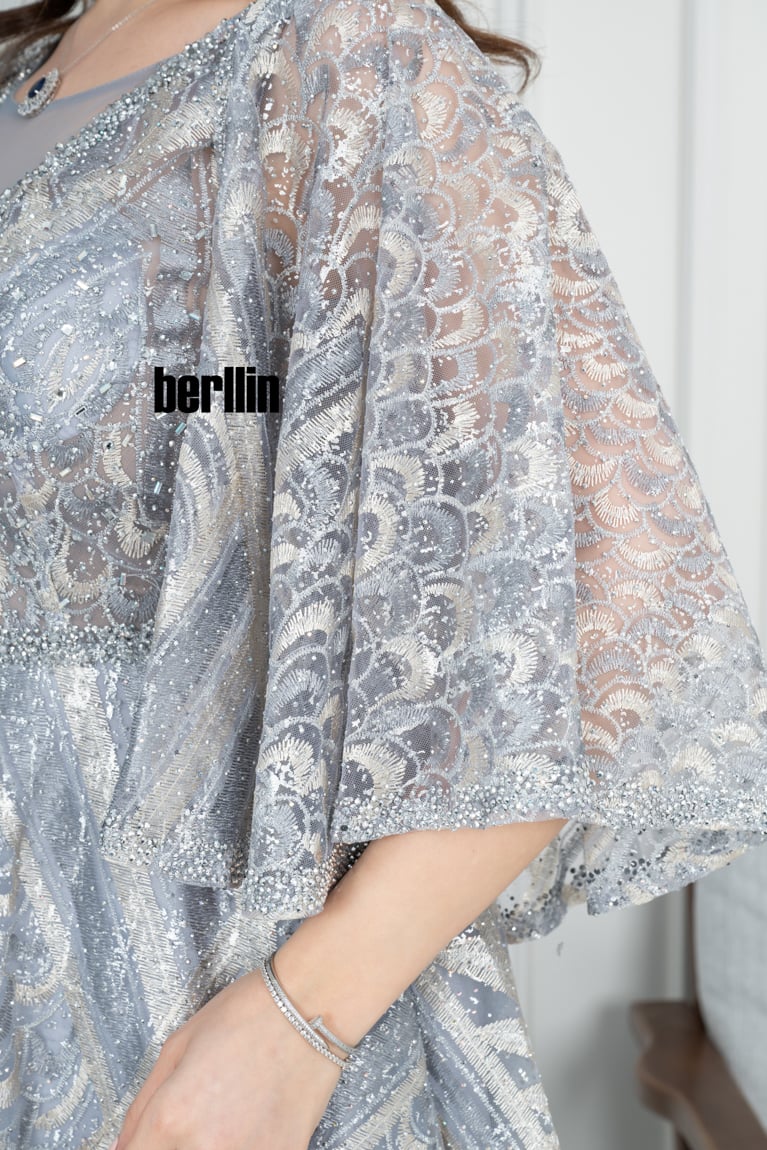برعت ماركة برلين في تقديم هذا الفستان بتصميم مستوحى من القصص الخيالية، حيث يتميز بأكمام طويلة بتصميم بف وبطانة جزئية تمنحك تغطية مناسبة ويغلق بزم خفي في الخلف ويزدان بطبقة مطرزة. يعد هذا الفستان الخيار المثالي لإطلالتك المسائية وفي حفلات الزفاف والمناسبات الخاصة.