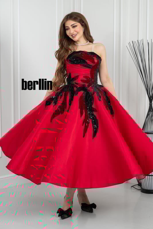 حين يلتقي اللهب الأحمر بظلال أوراق سوداء براقة، تولد لوحةٍ من الجرأة والأناقة. يتراقص قماش التاڤتا حولك كشرارة ناعمة، بينما يخطّ التطريز اللامع على خصرك قصيدةً من الضوء، فتتحولين إلى نجمة كوكتيلٍ تمشي بثقةٍ وسحرٍ لا يُضاهى.