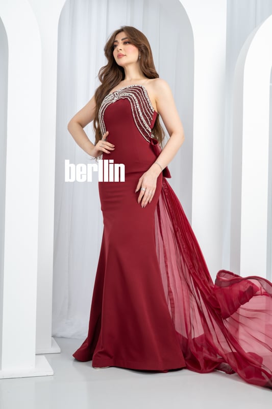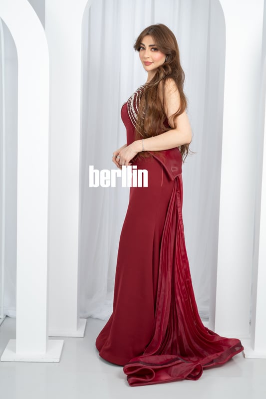 يتراقص فستان «رويال بوردو» كقطعة فنية ملوّنة بنبض العنّابي العميق، حيث ينساب القماش ناعمًا على الأكتاف والعنق كهمسة رقيقة قبل أن يحتضن الخصر بأناقة ساحرة. ينسدل ذيله الحريري الشيفون بنعومة شبّاك شفاف، مصحوبًا بلمسات التطريز البلّوري التي تشعّ كالنجوم في ليلة هادئة، فتلتقط أنفاس من حولك بمزيجٍ من الفخامة والرهافة. كل خطوة فيه تحكي قصة سحرٍ لا ينتهي، وسط وهج بريق خفي يزيّن خطوطك ويحتفل بأنوثتك في أبهى أوقاتك.